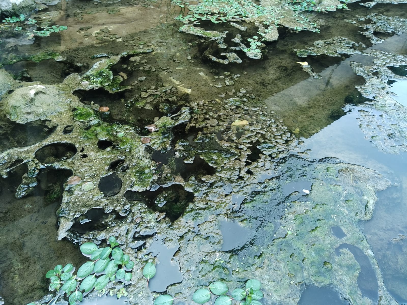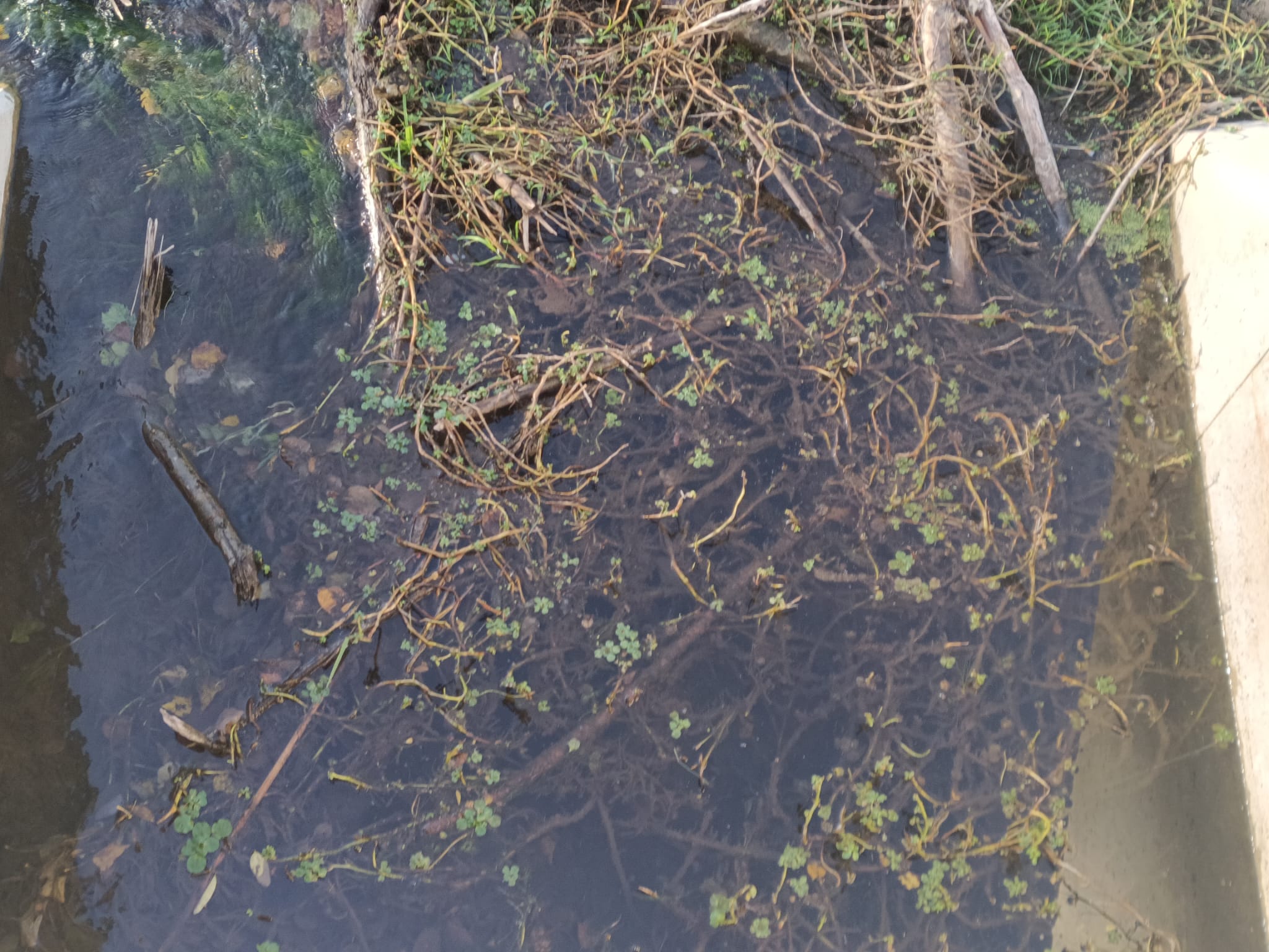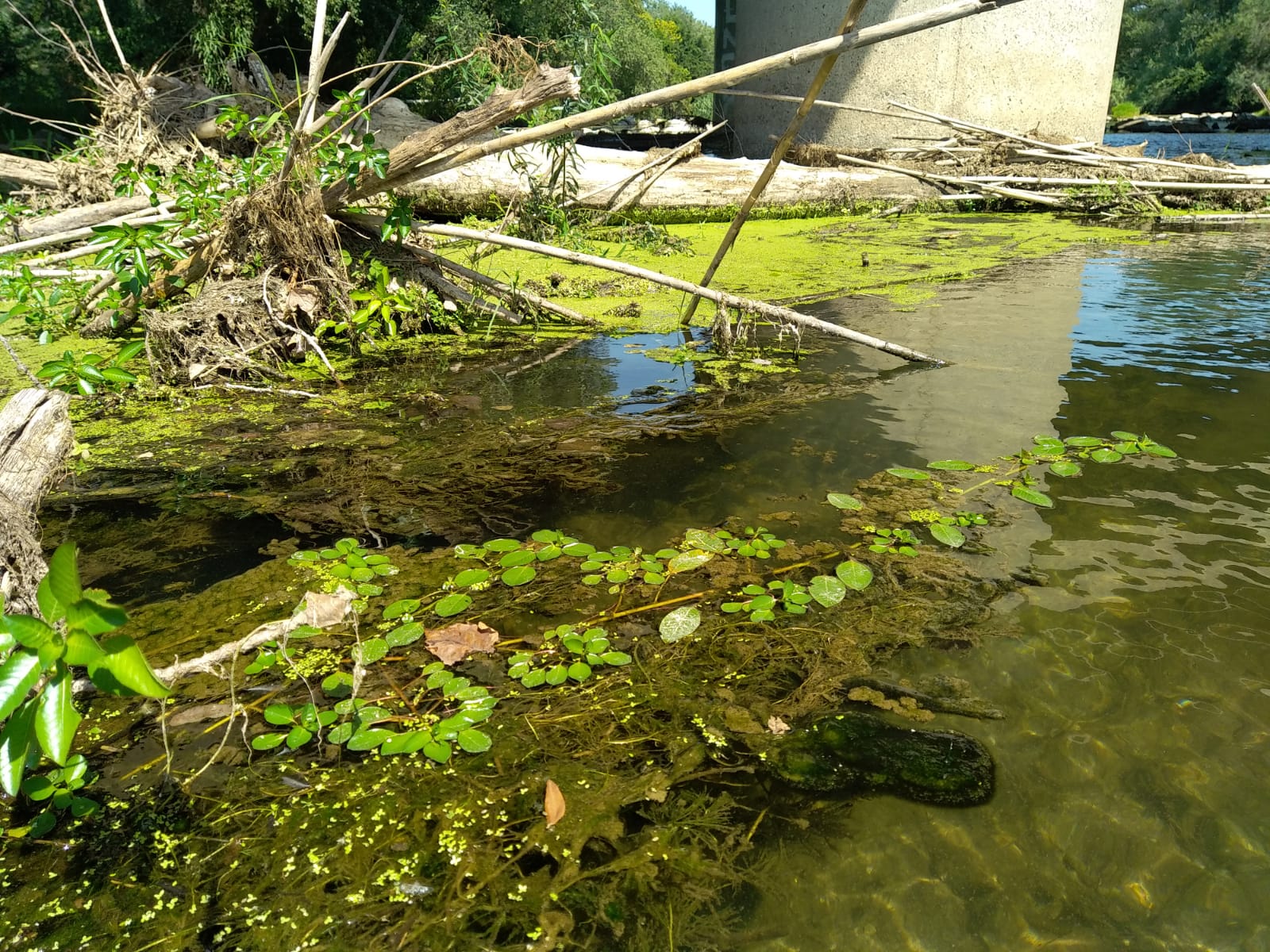 Début de prolifération sous le Pont d’Elne : 6 aout 2025, crédit photo : SMIGATA