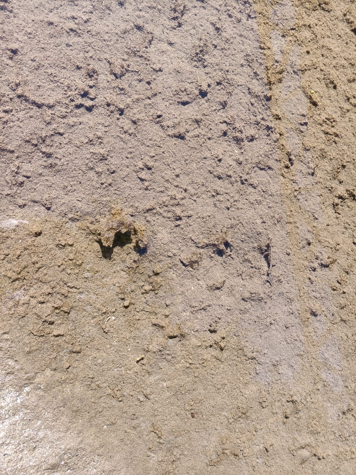 Passage à gué d’Ortaffa : des flocs flottants en surface.