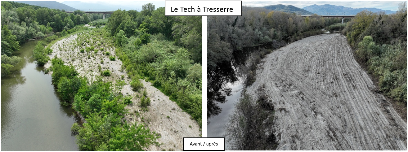 Celle-ci a été réalisée en parfaite adéquation avec les principes de gestion mis en avant par les études du transport solide réalisées par le Syndicat du Tech ces dernières années. Les objectifs de ce plan sont de libérer les stocks sédimentaires excédentaires susceptibles de favoriser les débordements et les érosions sur des secteurs sensibles en période de crue, de permettre un apport régulier des sédiments de l’amont vers les zones en déficit avec pour ambition de limiter les impacts négatifs de l’incision tant sur la biodiversité qu’en matière de prévention des risques, notamment de déstabilisation des berges et des ouvrages (voirie, ponts,…).
