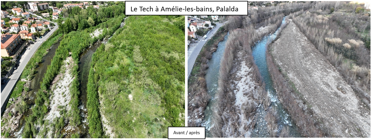 Dans une optique de gestion globale, le Smigata a établi un programme sur 5 ans pour la réalisation de travaux de restauration des cours d’eau (entretien de la végétation des berges) mais aussi pour des travaux d’amélioration du transit sédimentaire du Tech et de ses affluents. Pour l’année 2023, environ 400 000 € ont été alloués dans le cadre de la restauration de près de 85 km de cours d’eau et 220 000€ pour la gestion sédimentaire sur une surface approchant les 11 ha.